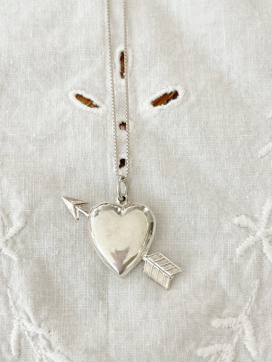 Vintage Heart and Arrow Silver Necklace