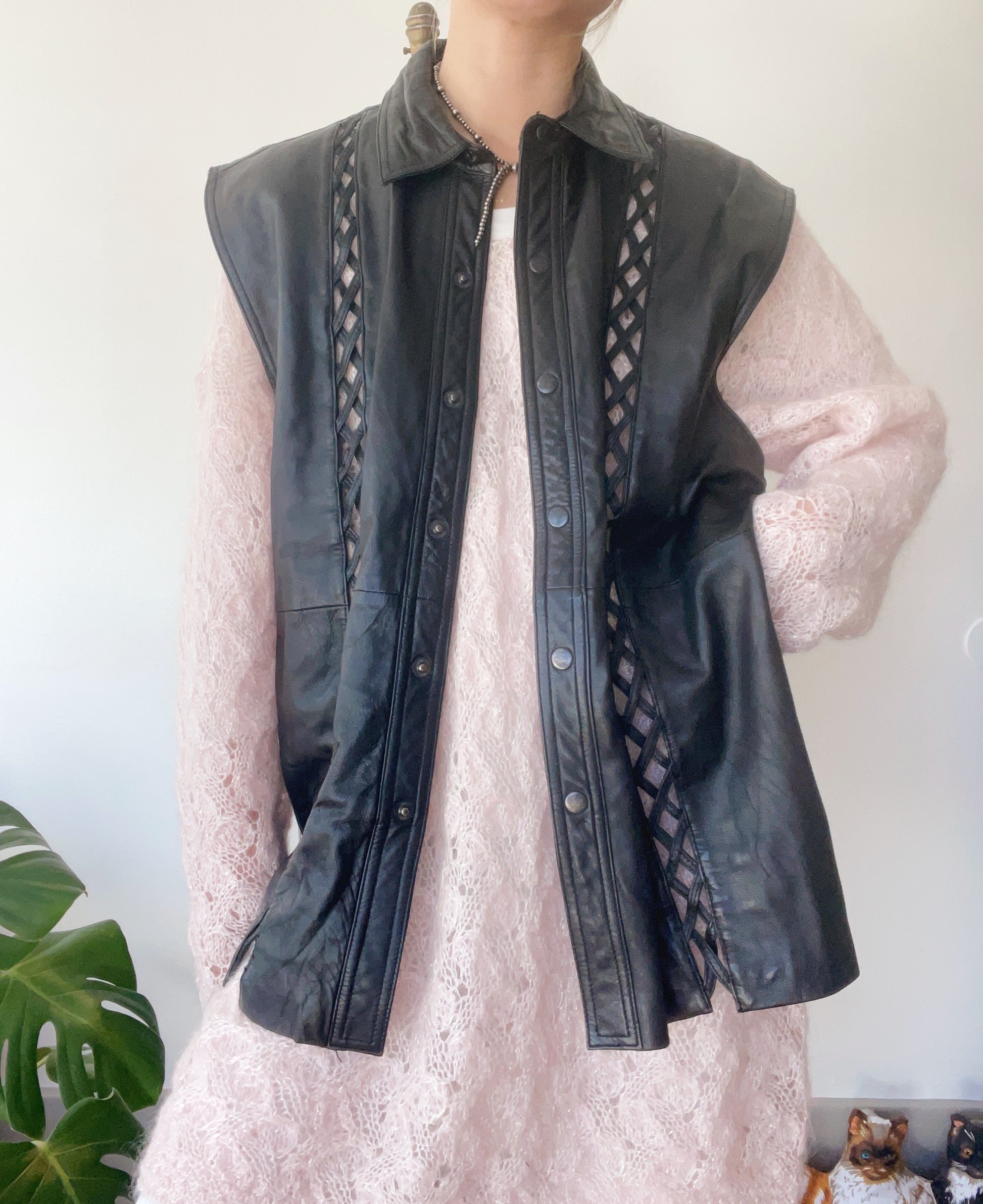 サイズがXXLのもので、オーバーサイズとして着用ができるレザーベスト♡