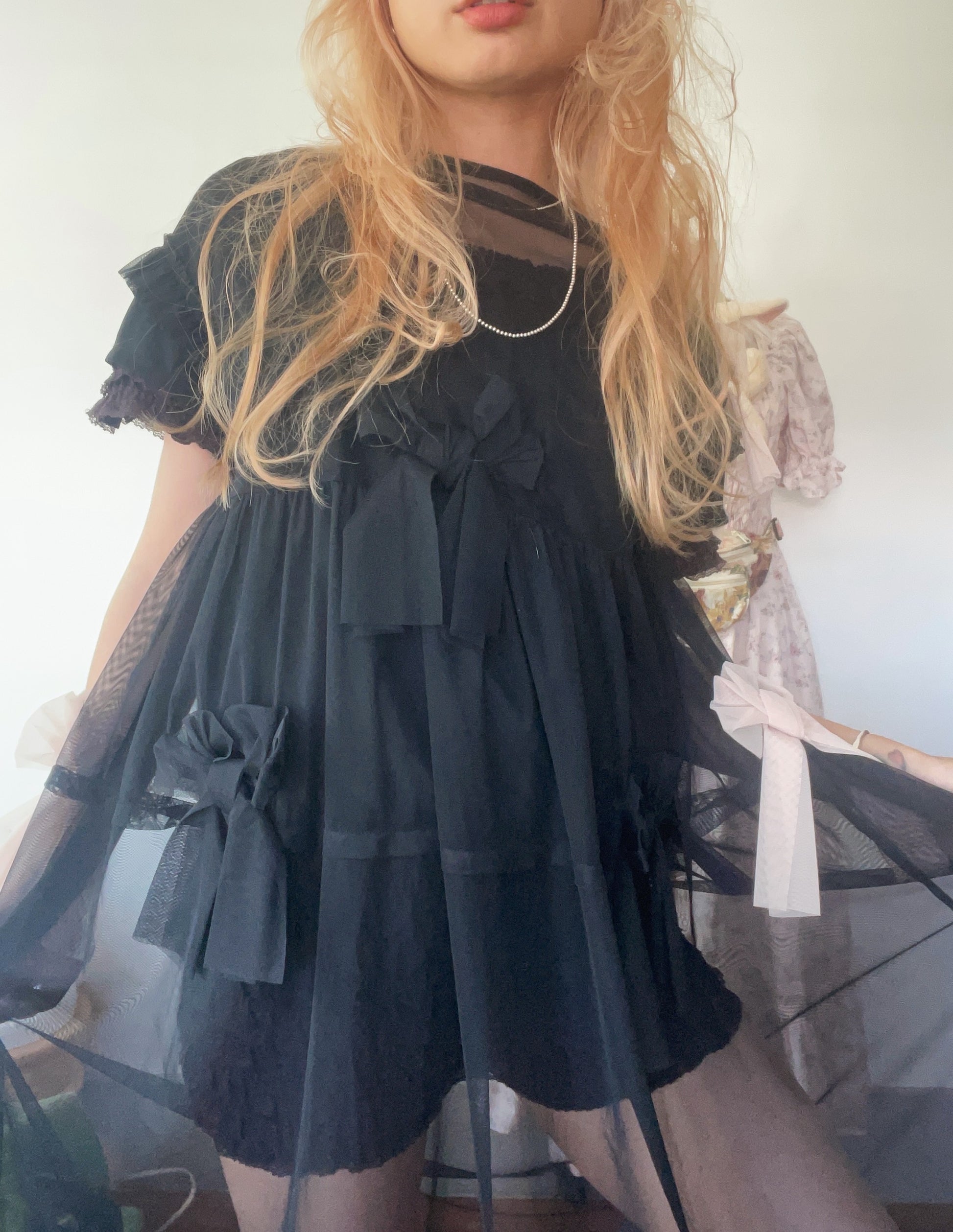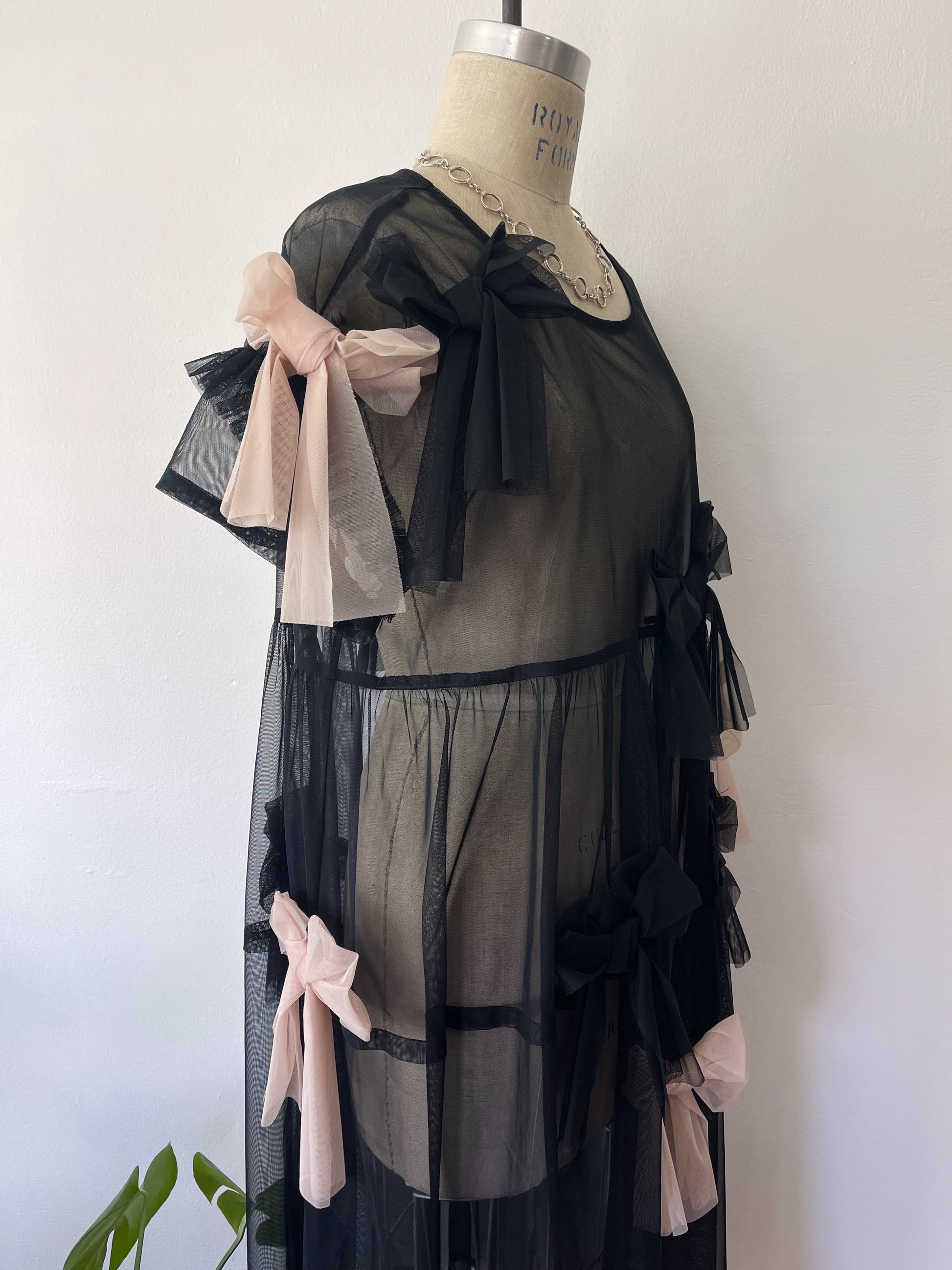 Black Sheer Ribbon Dress