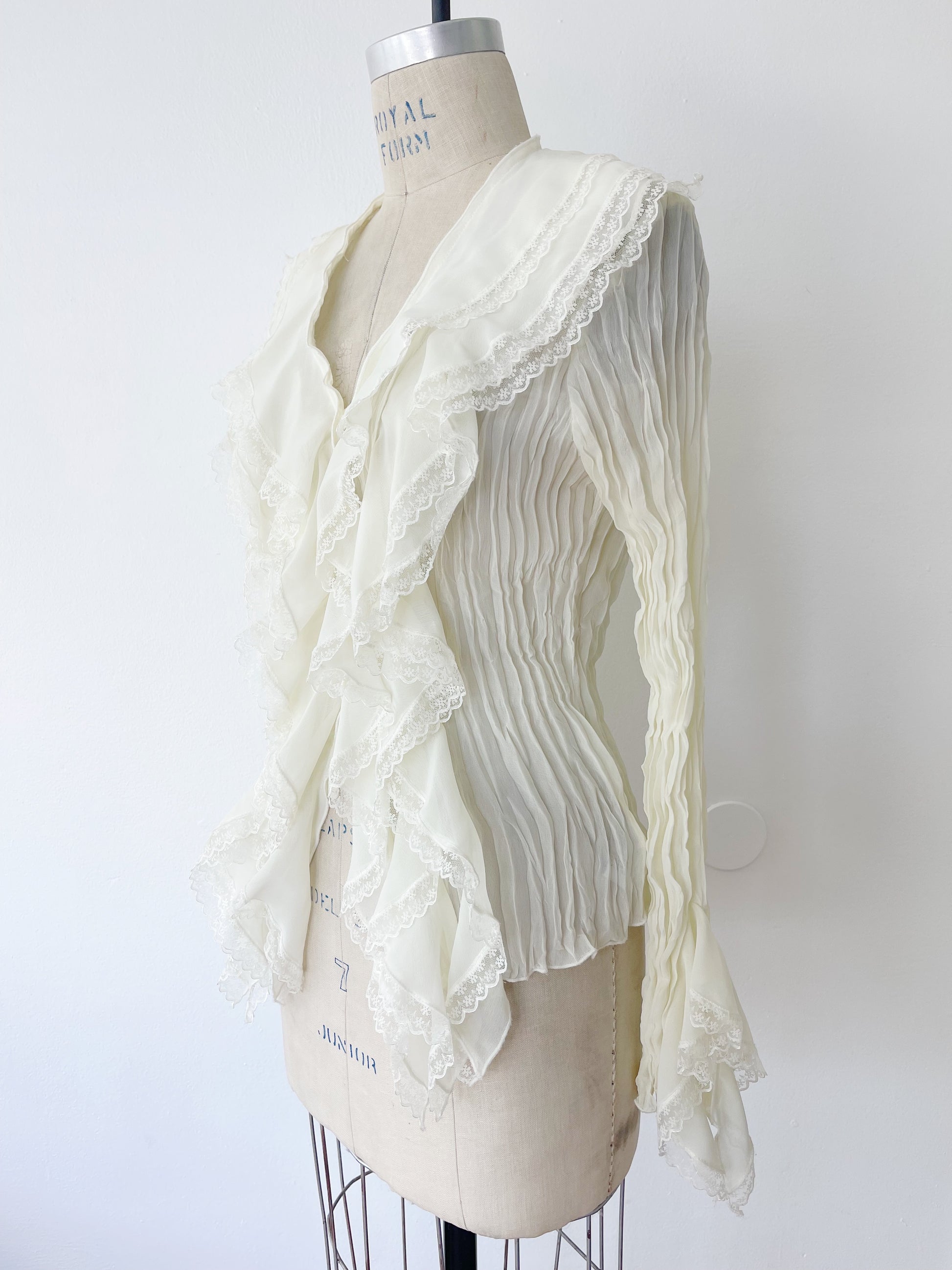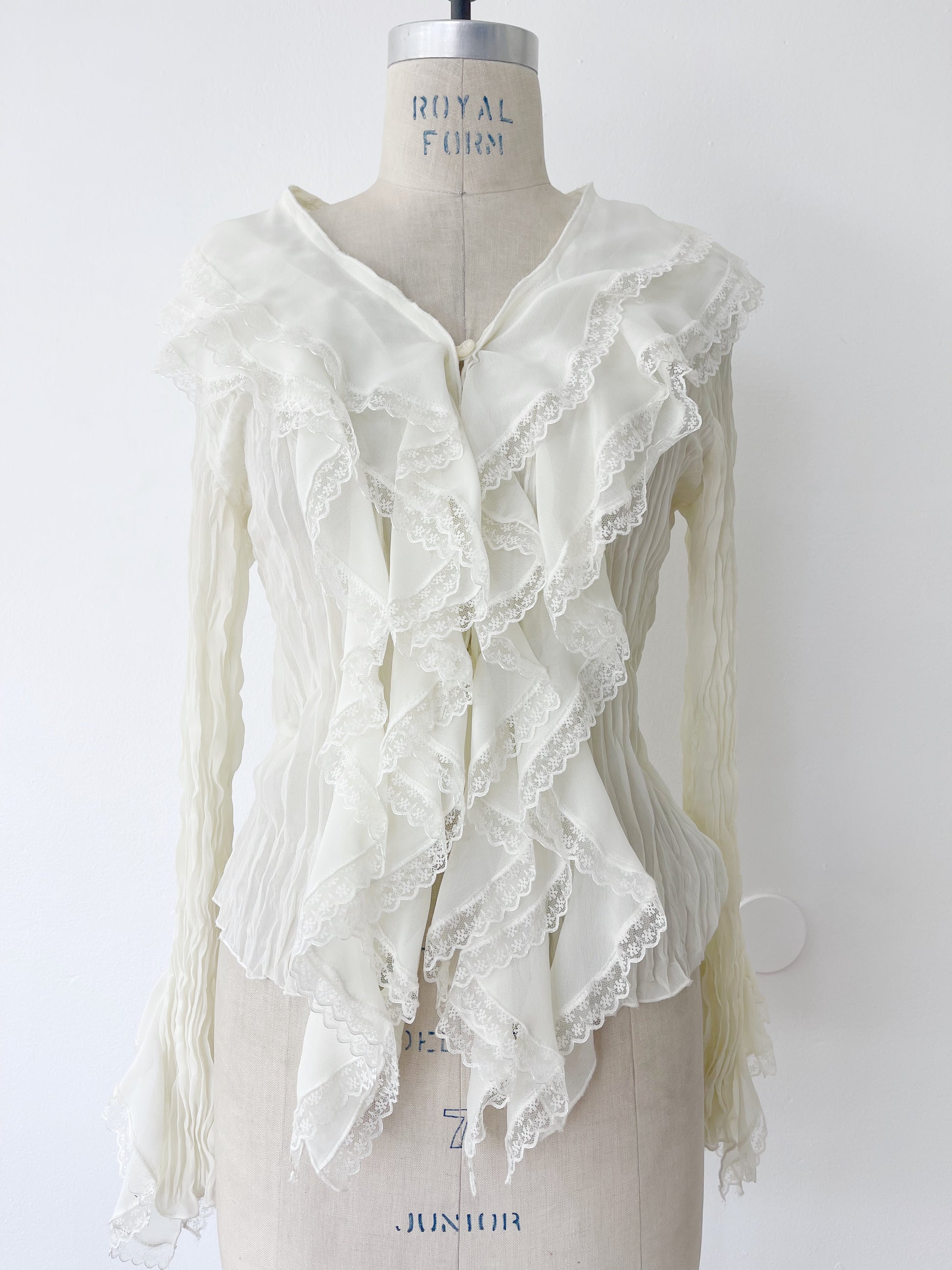 プリーツ加工になっていて、伸縮性が多少ある生地感のとってもラブリーなブラウスです♡