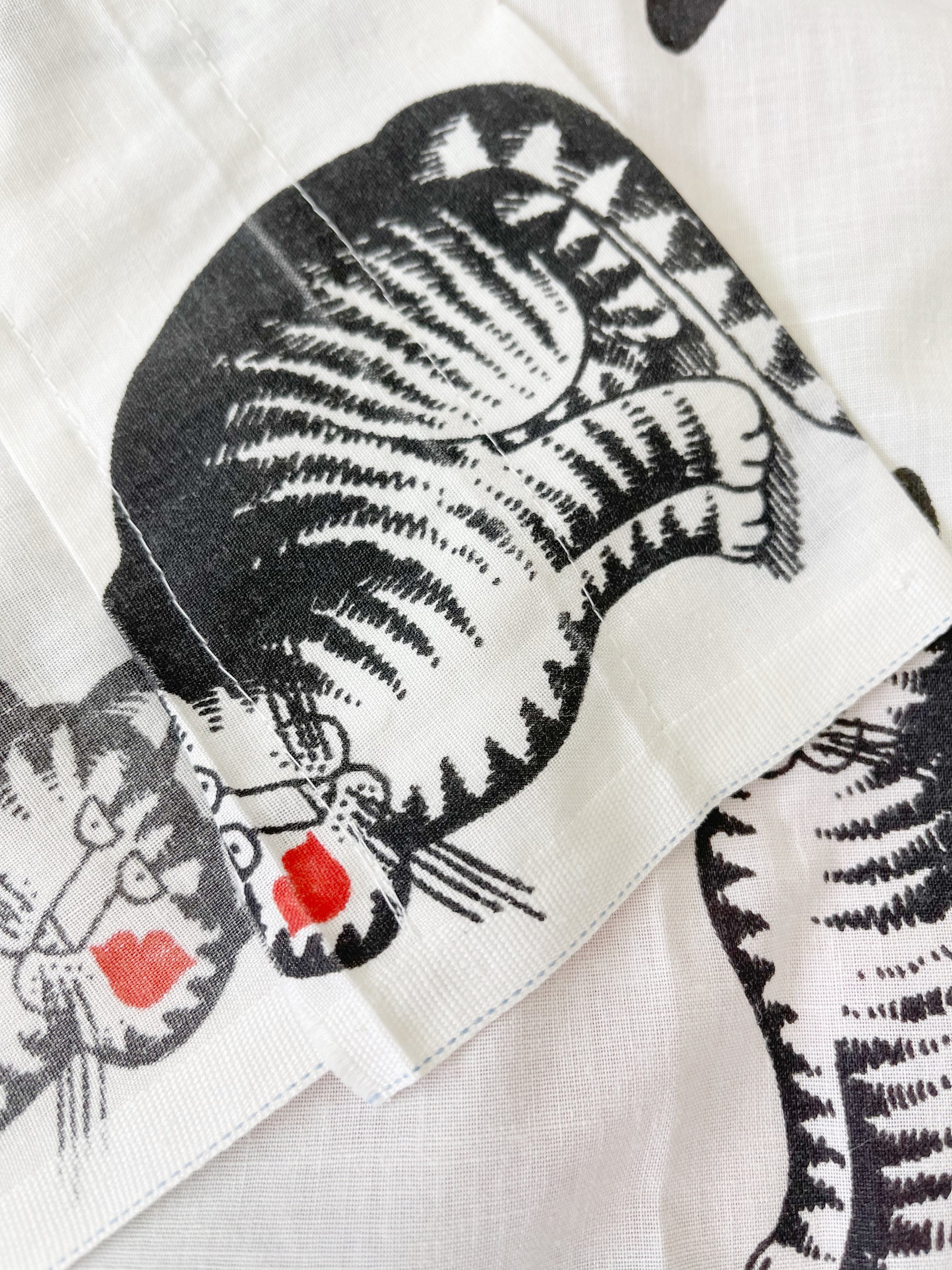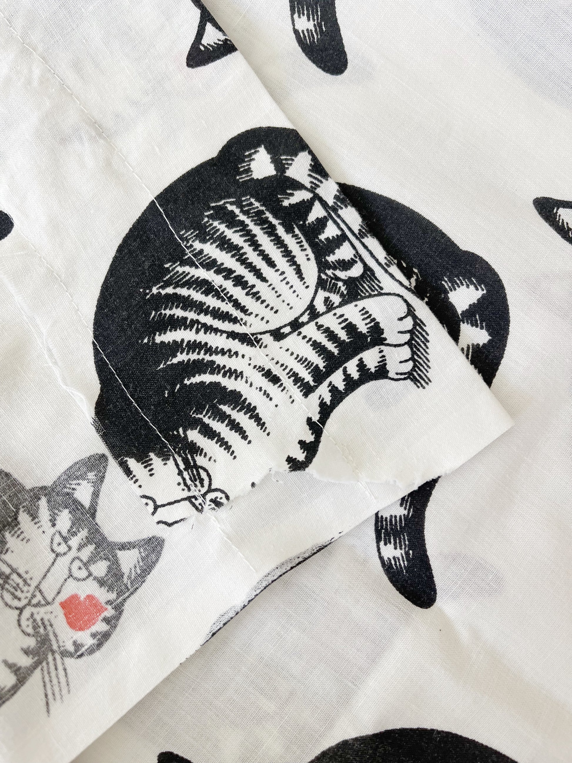 ヴィンテージのクリバンキャットのベッドシーツを誰かがカーテンにした物を買い付けてきました☺︎